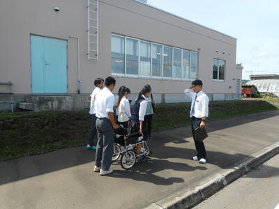水害では道路が水没する可能性があります。また、怪我人が出ることも考えられます。そのため、車椅子を用いたり、ルートは各自応変に対応したりと、種々の状況に対応できるように行動しました。