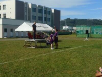 そのため、午後に予定していた軍対抗リレーやエキシビションを中止にせざるを得ず、体育館に移動しての閉会式や写真撮影となりました。そのような状況でも、工夫を重ね、最後まで楽しむことができました。