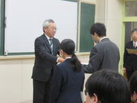 表彰式では、成績優秀賞や皆勤賞、精勤賞など、生徒たちの今年度の学習や学校生活における努力がたたえられました。