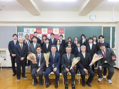 最後のホームルームを終えた後、玄関で在校生と教職員に見送られながら、学校を旅立ちました。